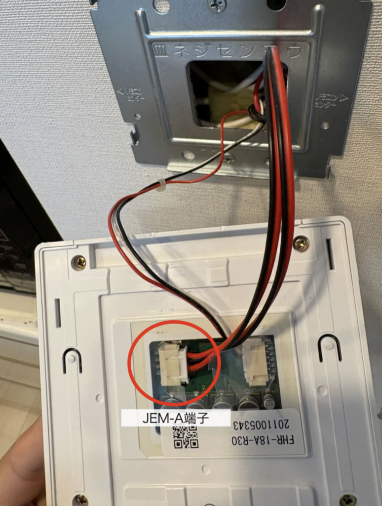 そしてJEM-A(HA)端子に市販の制御用2芯ケーブル(JEM-A準拠)を接続し、引き出します。