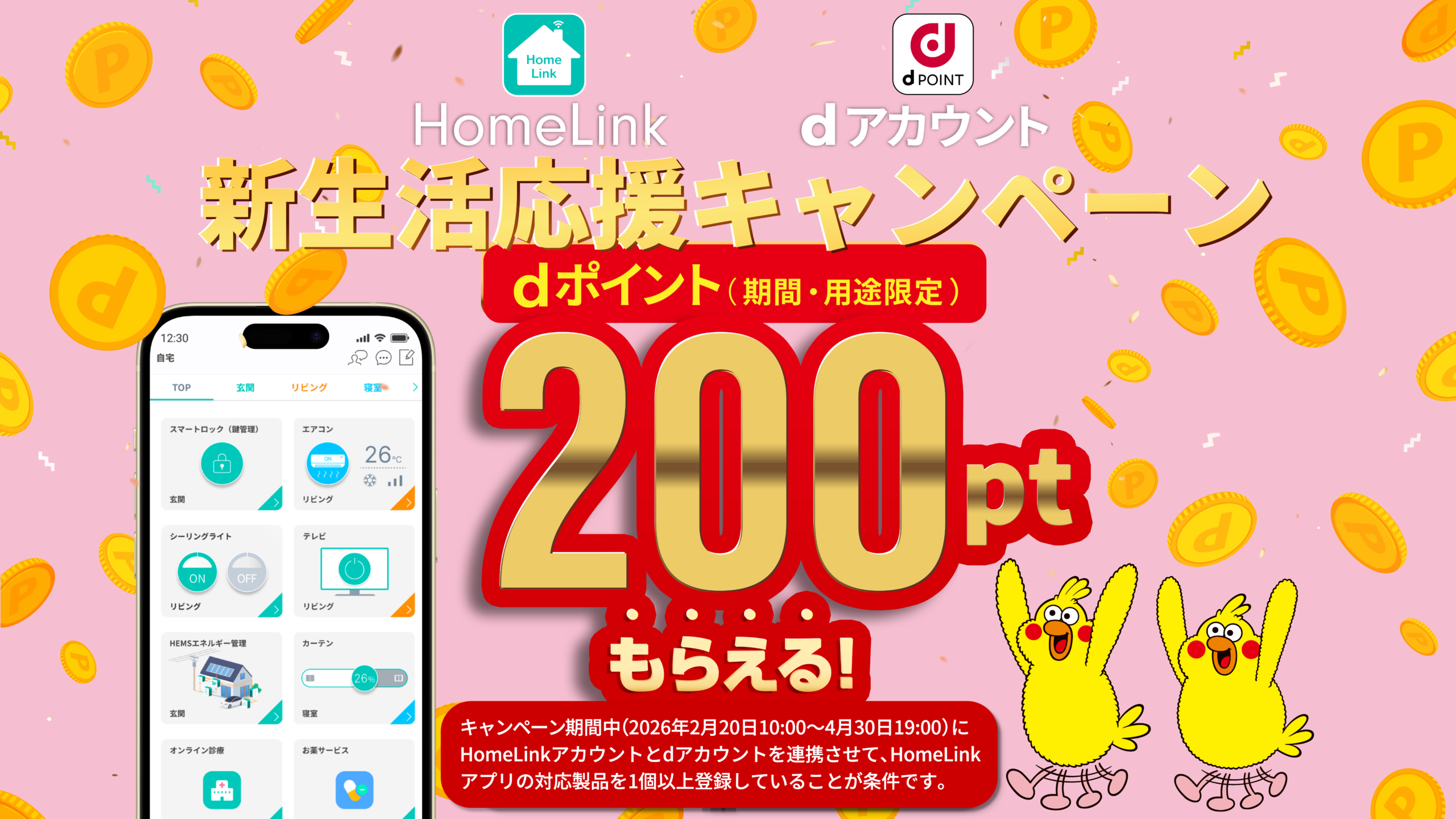 「新生活応援キャンペーン!HomeLink × dアカウント連携でdポイント200ptプレゼント!」