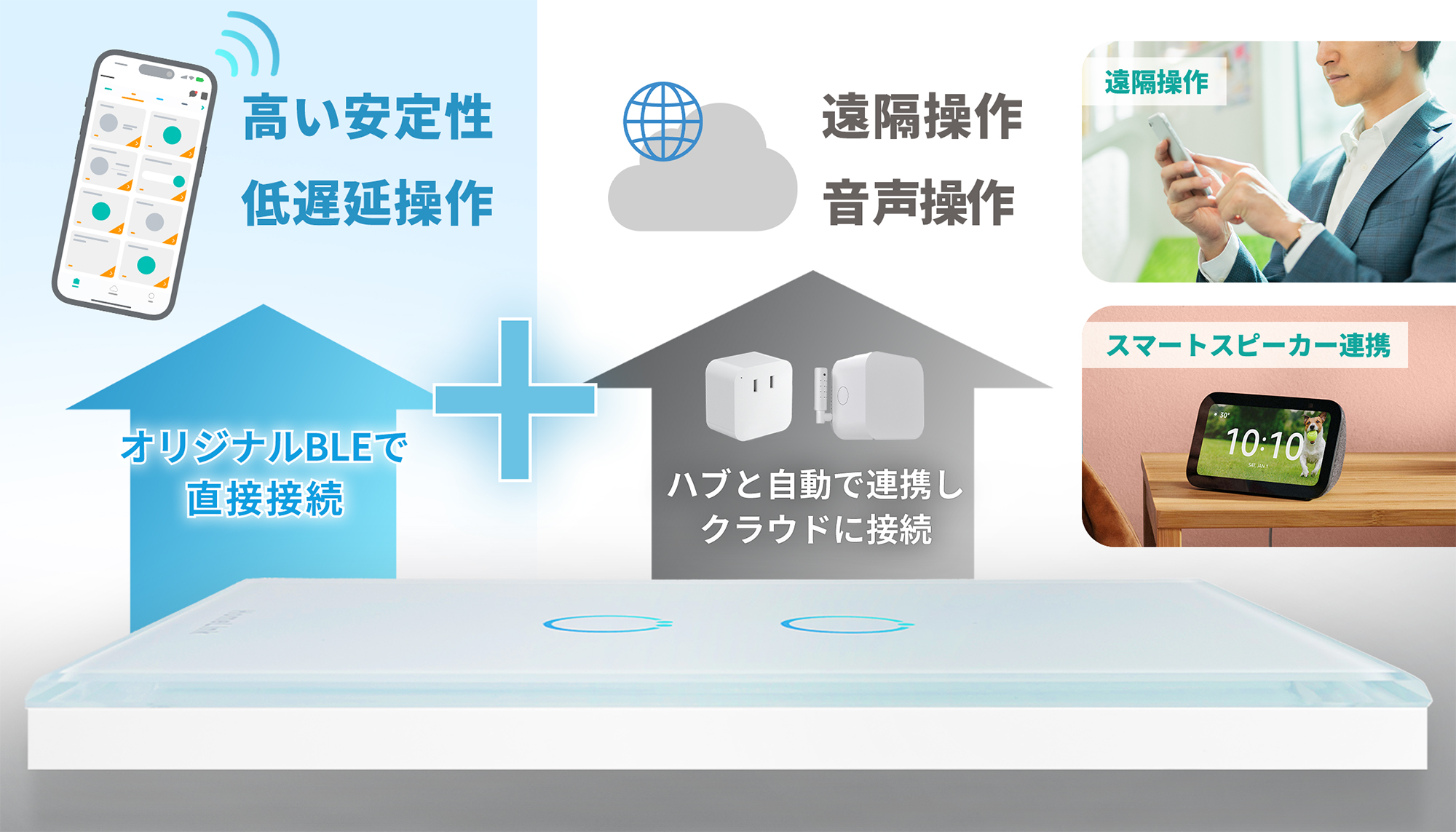 照明スイッチとマルチボタンは、オリジナルBLEによるローカル通信で直接連動可能。