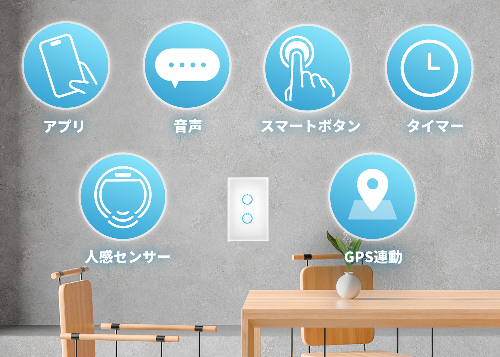 照明スイッチ(BT)は、アプリ・音声・スマートボタン・タイマー・人感センサー・GPS連動まで。