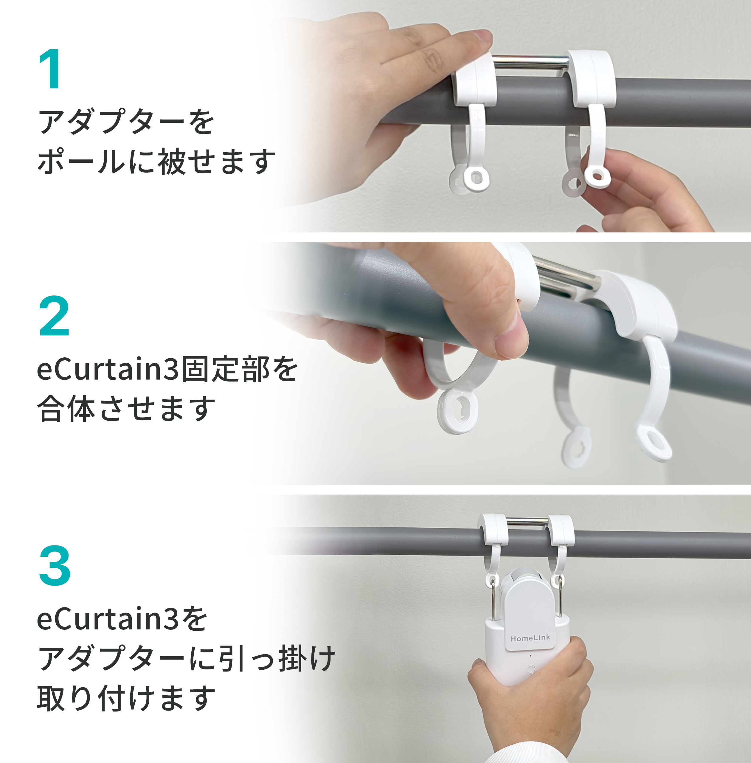 ポール型カーテンをお使いのお客様は、専用アダプターをHomeLinkストアよりご購入ください。