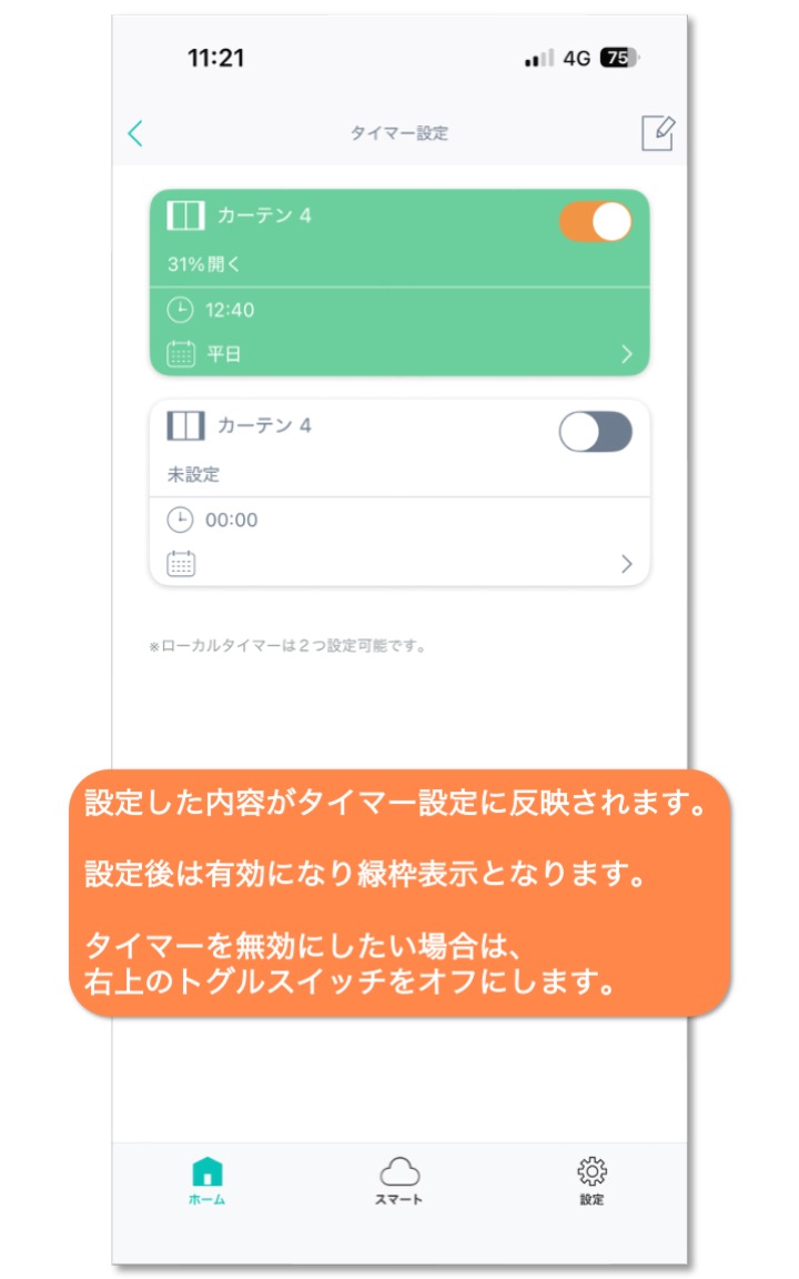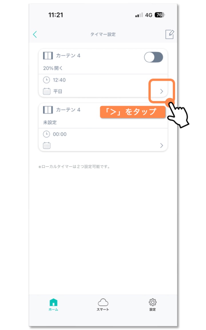 ローカルタイマーはハブ無しで使用できるタイマー機能です。最大2個まで設定することが可能です。