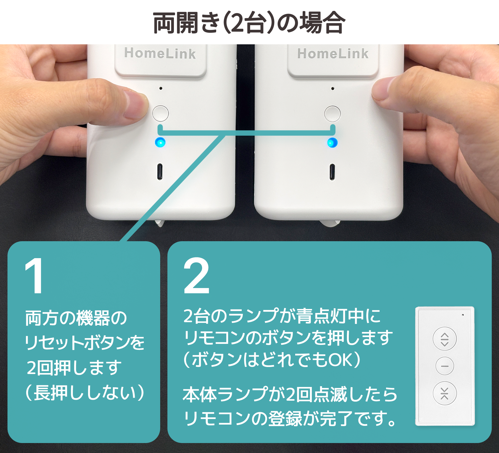 ※本製品を2台使用する両開き利用の場合、両開き(一括操作)の設定を行っておくことを推奨します。