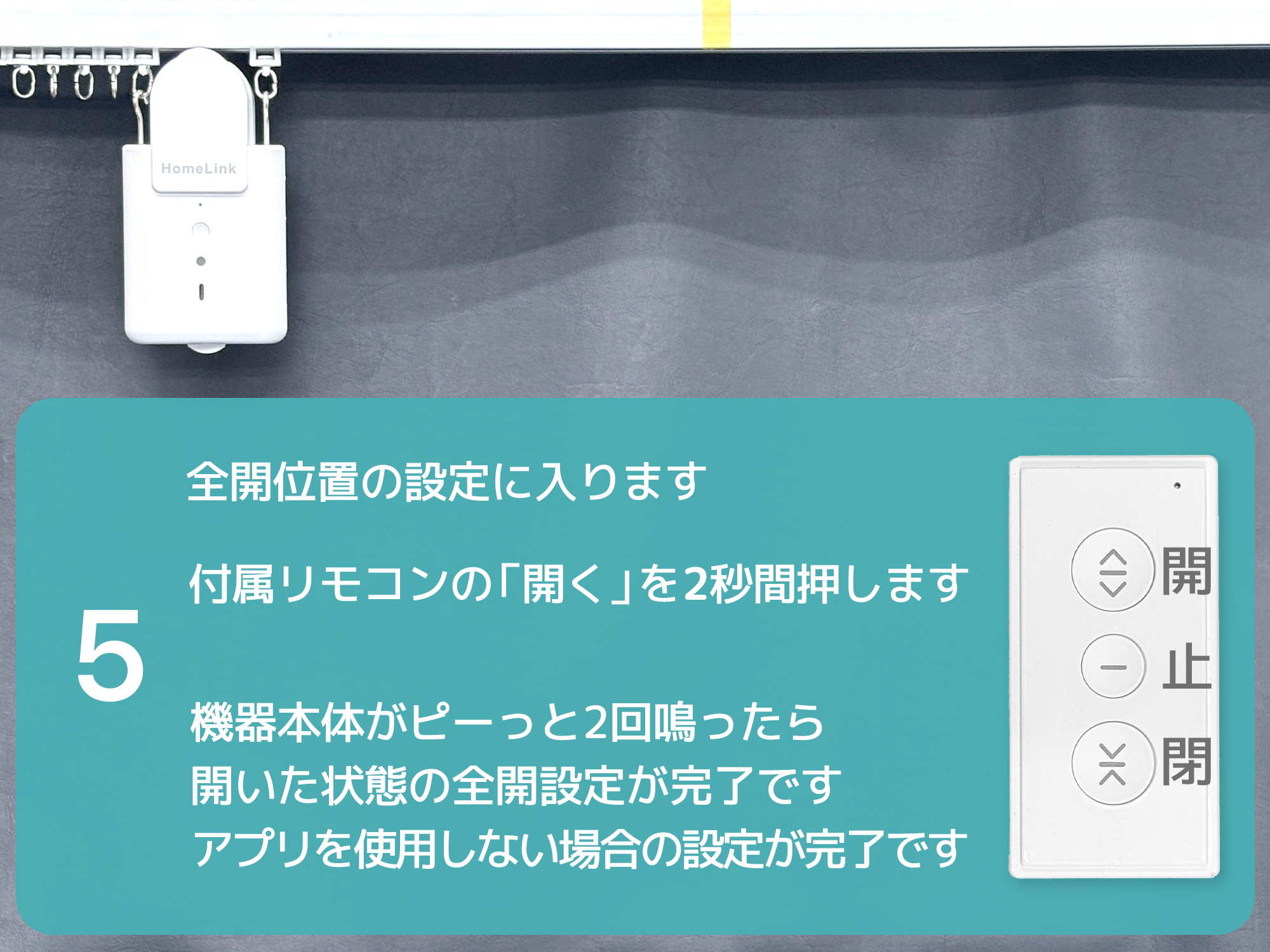 カーテンを取り付けて上記の流れで設定を完了させてください。