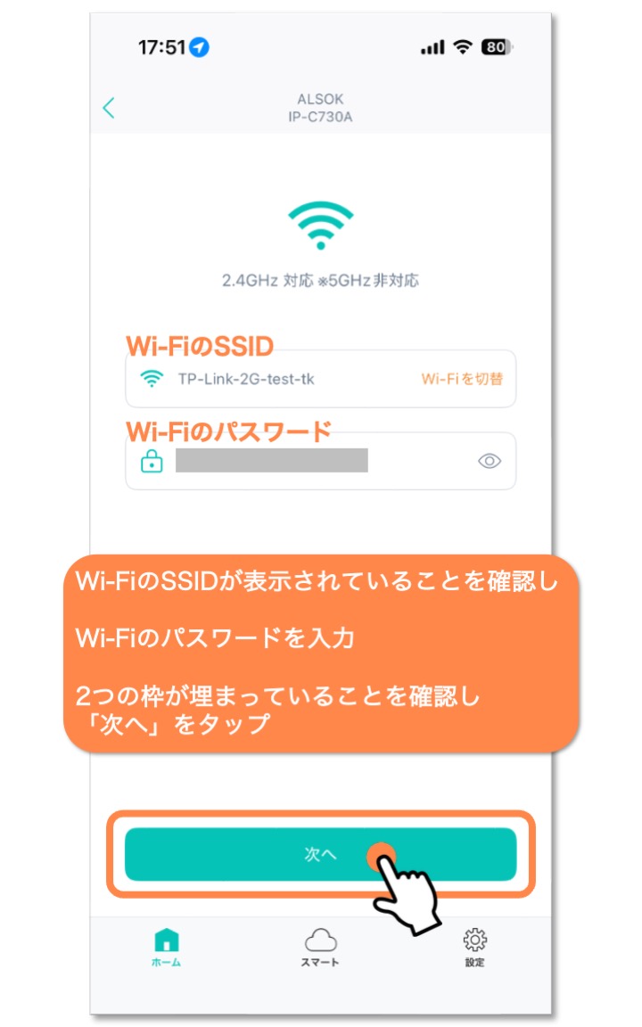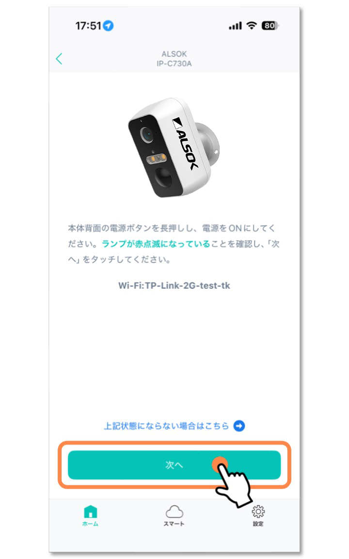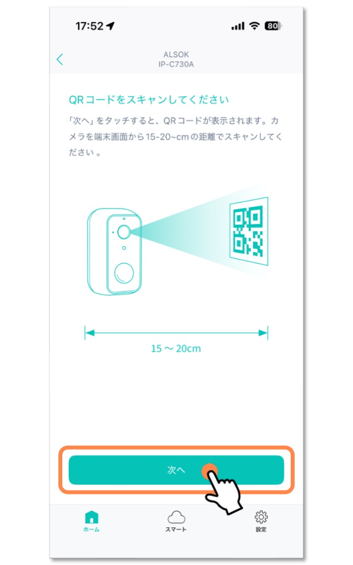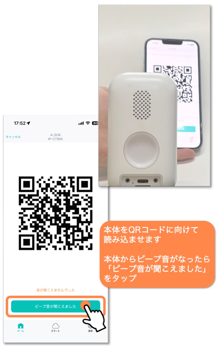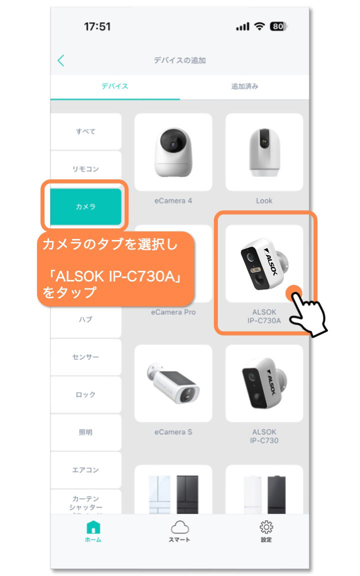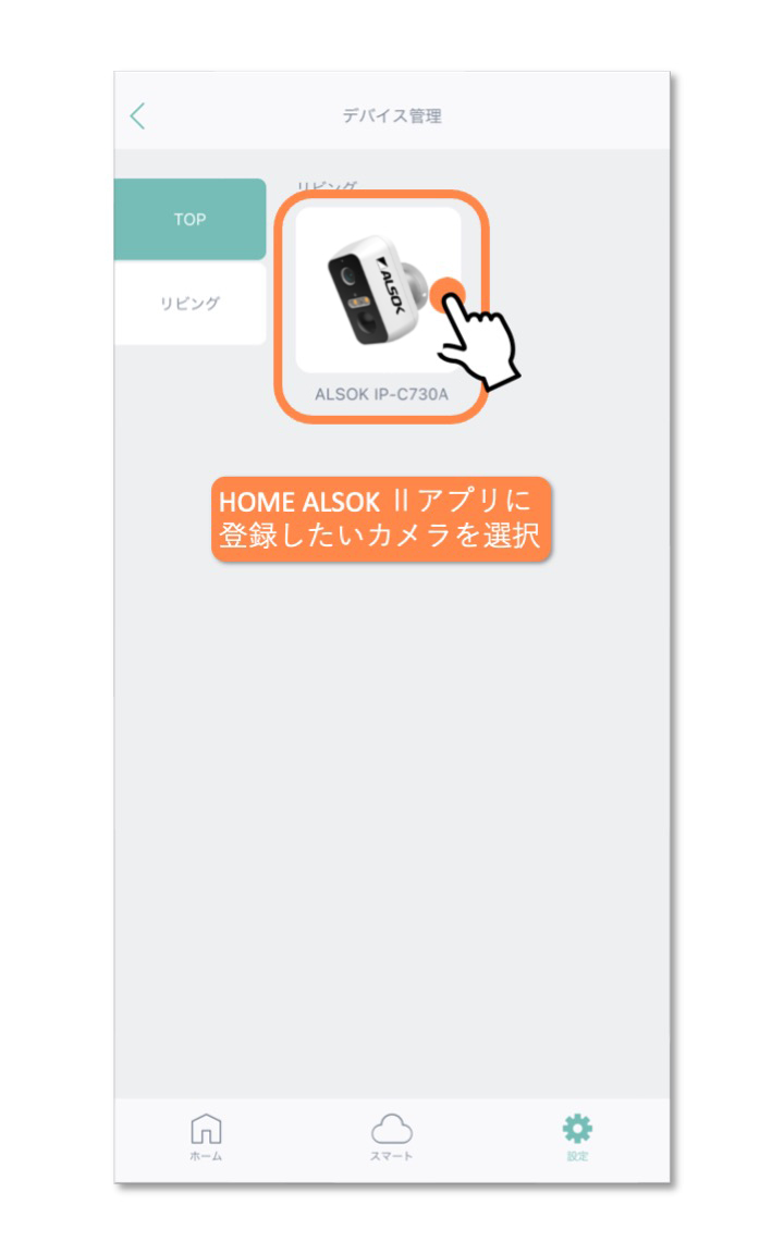 HOME ALSOK llアプリでカメラを登録するには、デバイスIDの入力が必要です。