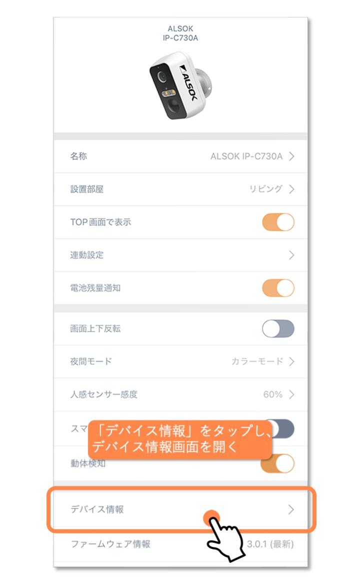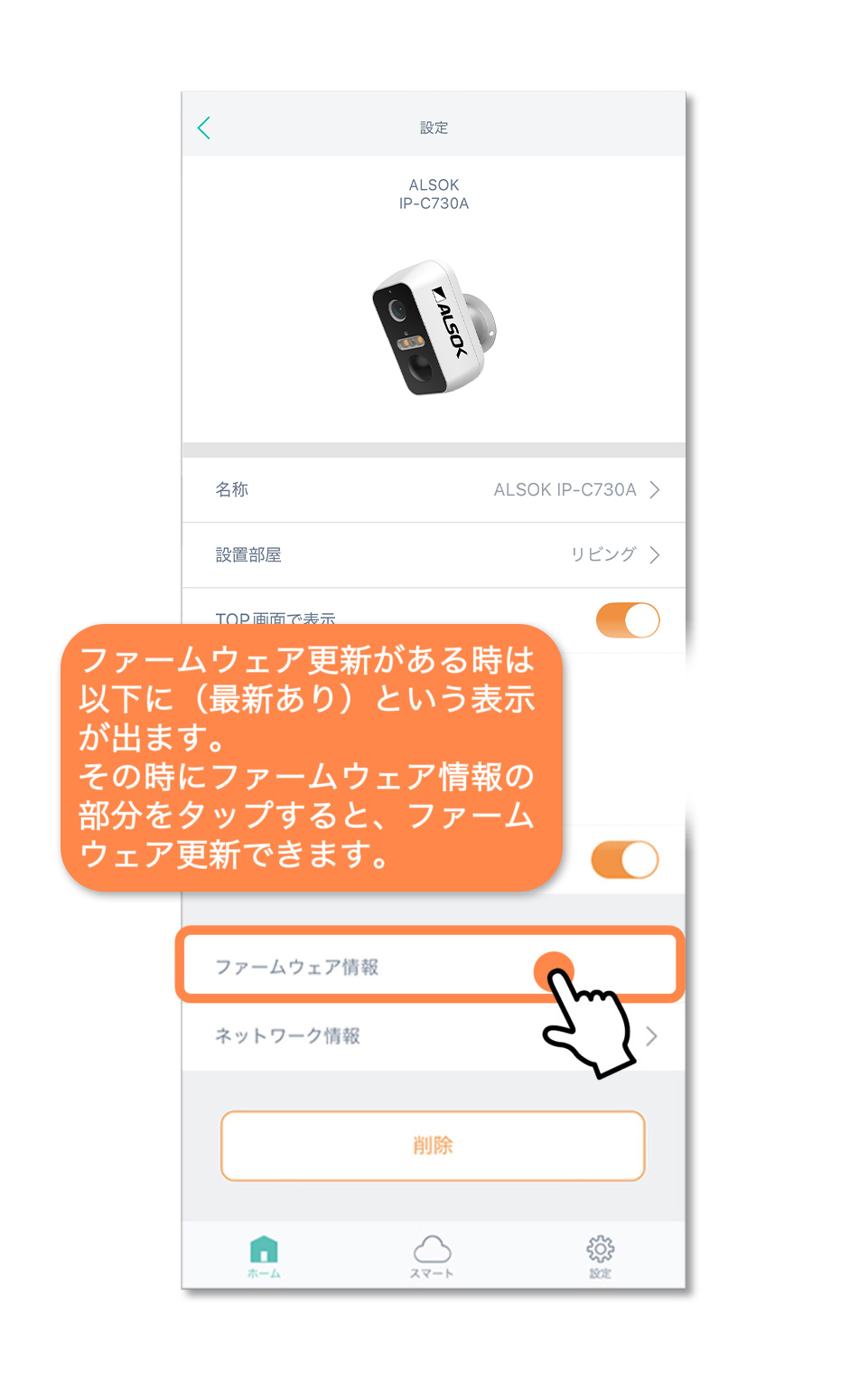 ※更新しなかった場合でも、デバイス設定画面の「ファームウェア情報」からいつでも更新可能です。