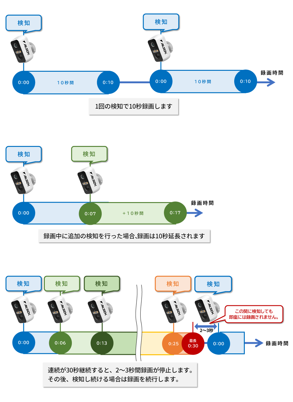 - この間に検知をした場合、microSDカードに録画を行いますが、スマートフォンへの通知はされません。