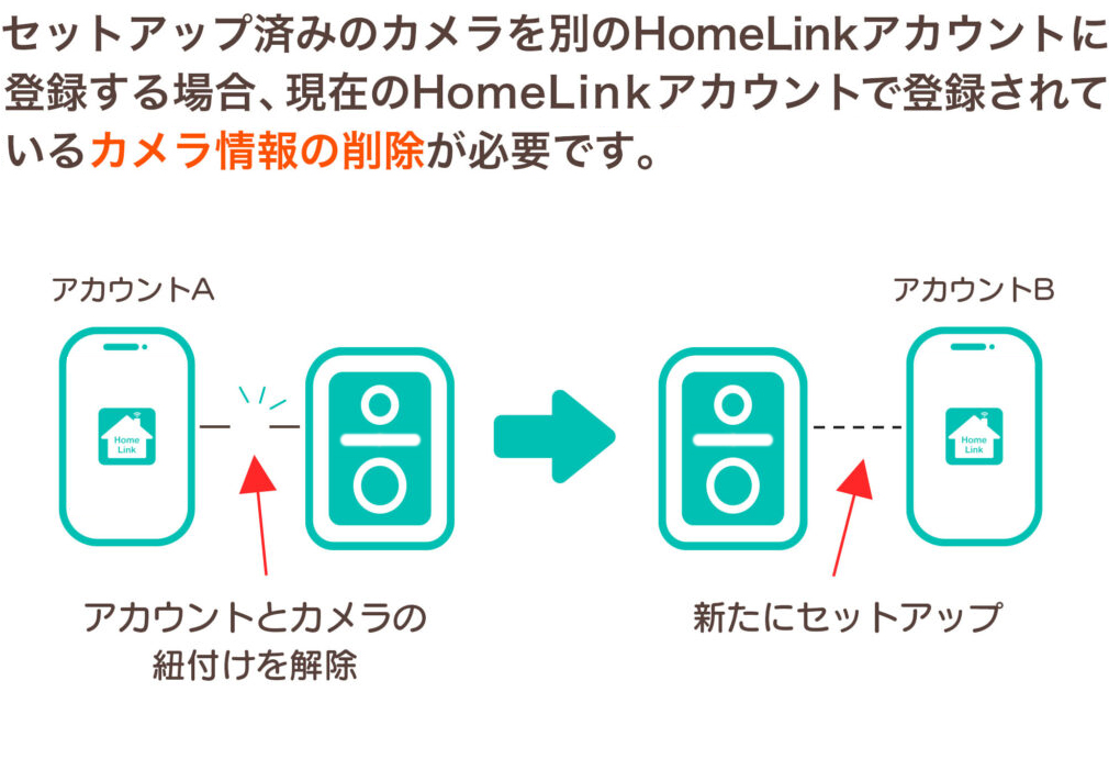 詳細は「セットアップ」の「カメラ情報の削除について」をご確認ください。