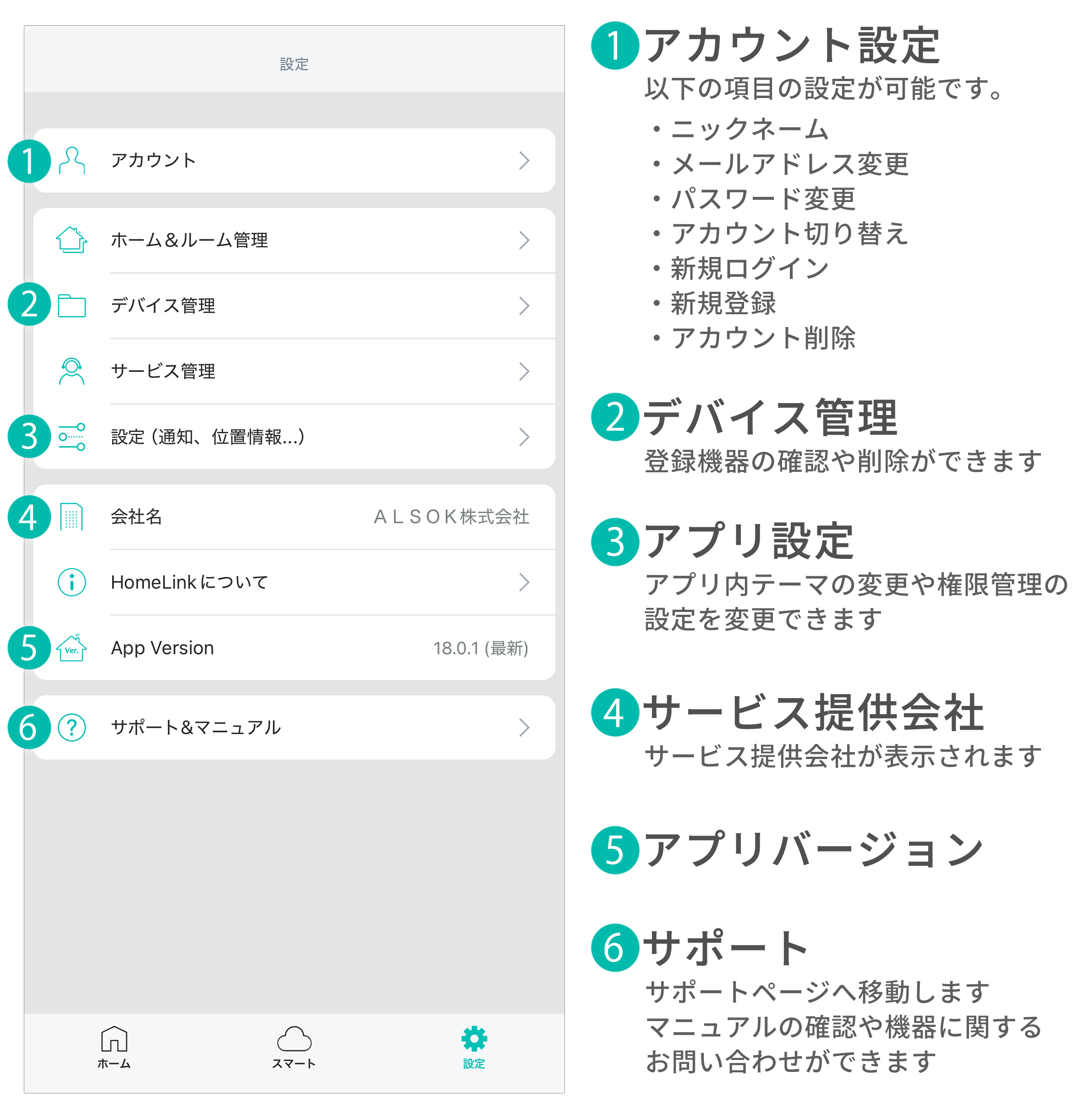 - 最新ファームウェアが存在する場合、HomeLinkアプリのデバイス設定画面から更新可能です。