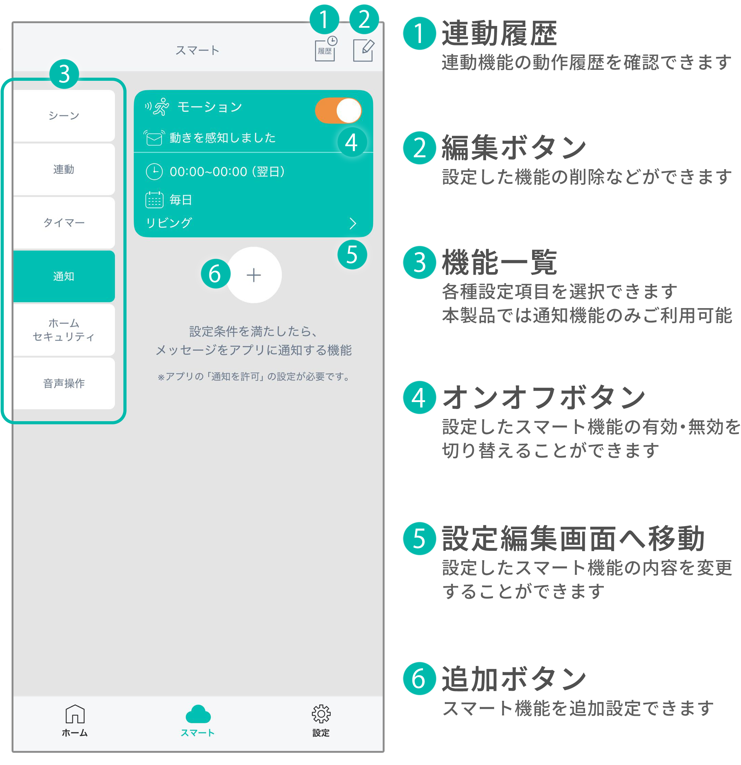 - 通知のオンオフはHomeLinkアプリから設定可能です。