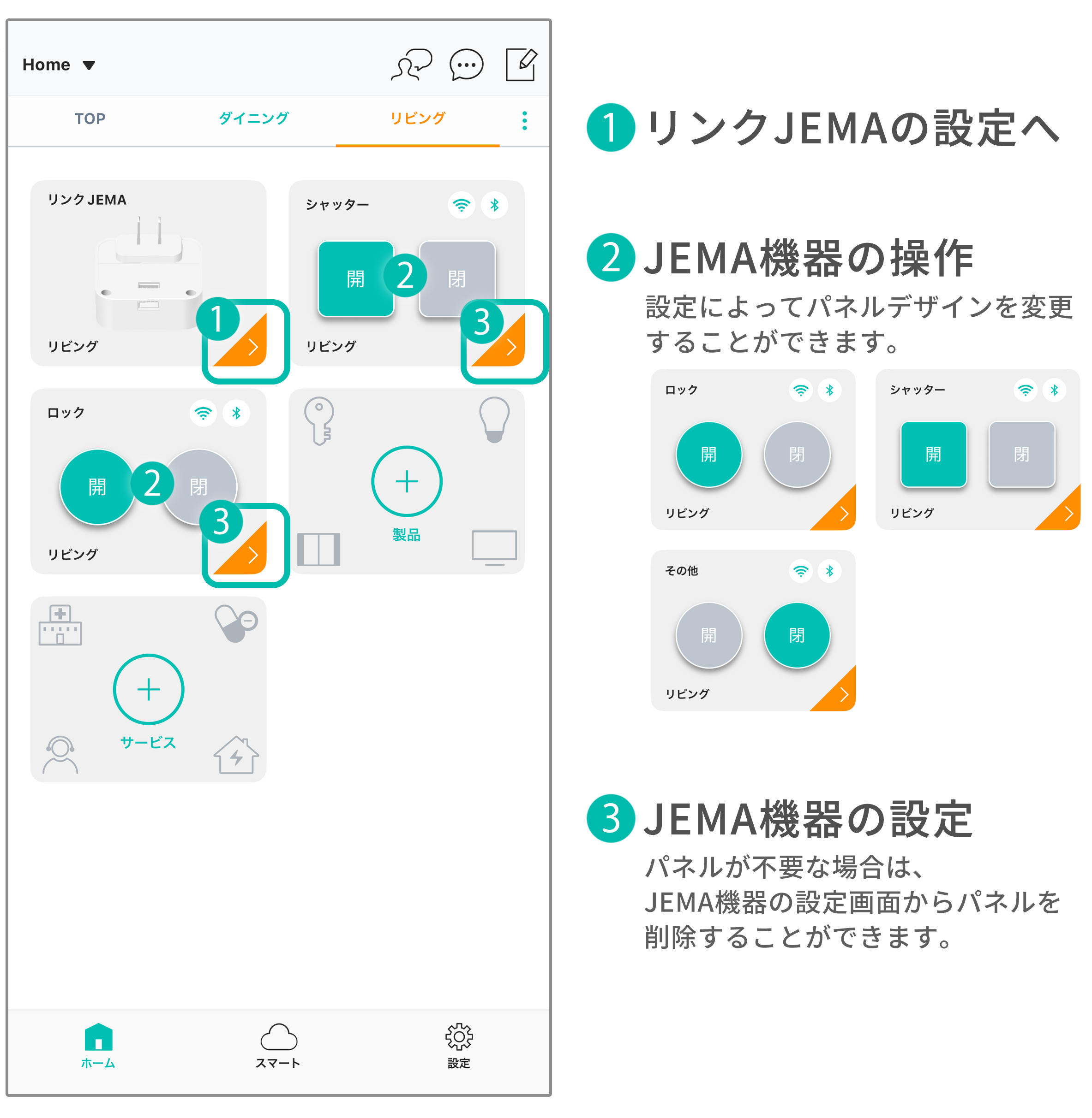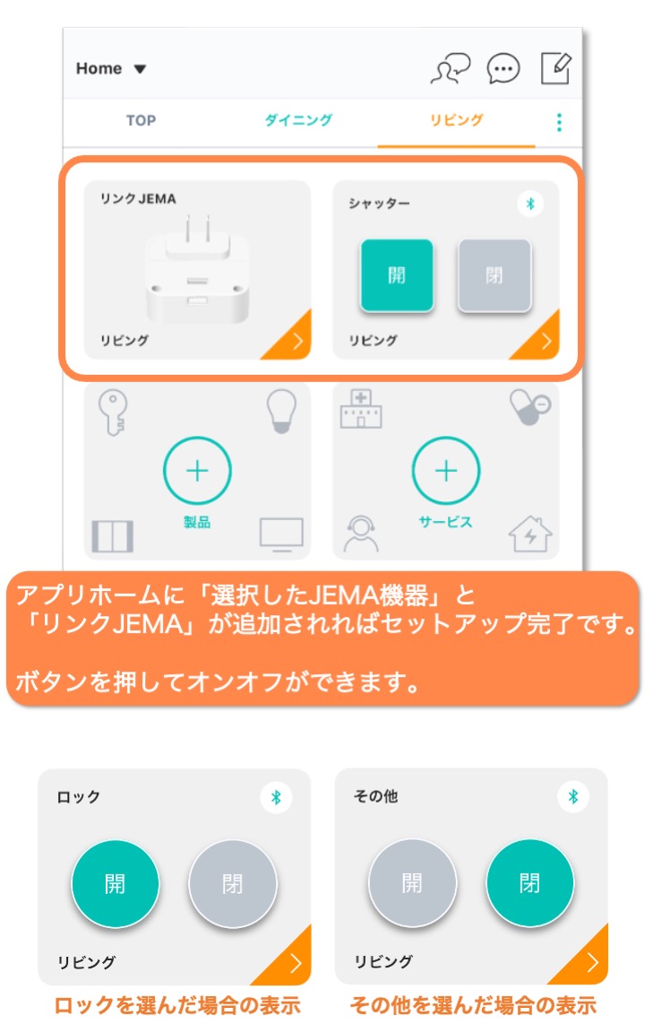 リンクJEMAは、住宅に設置されているJEM-A機器をHomeLinkアプリ内で一括管理・操作できるようにするハブです。