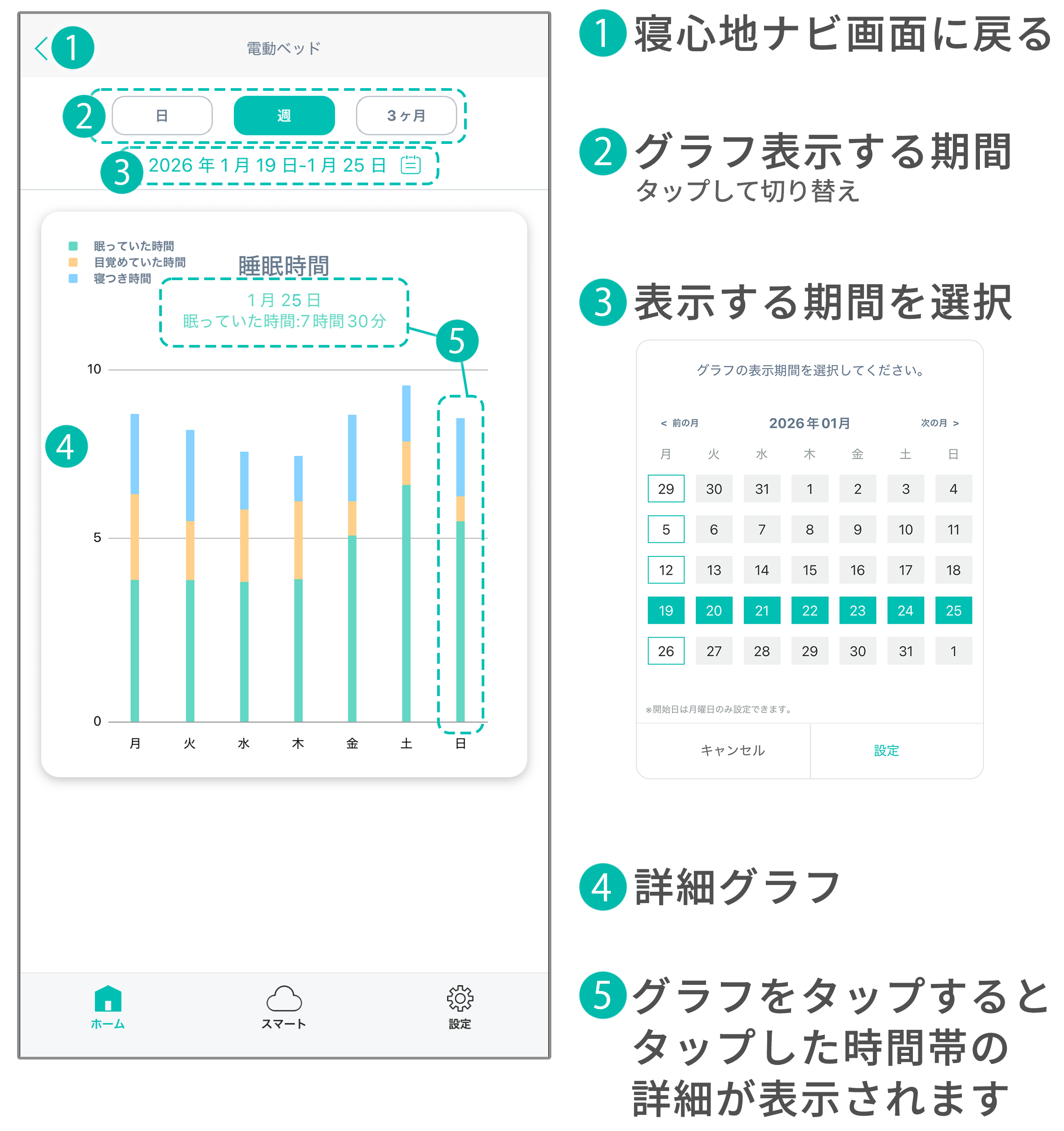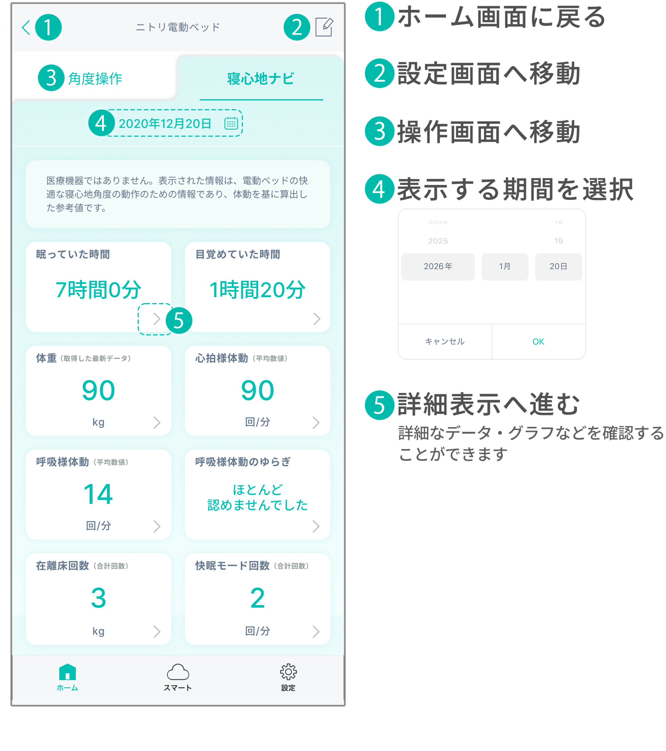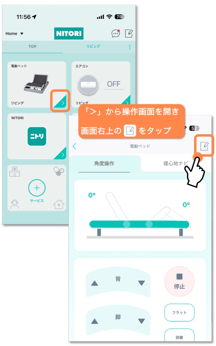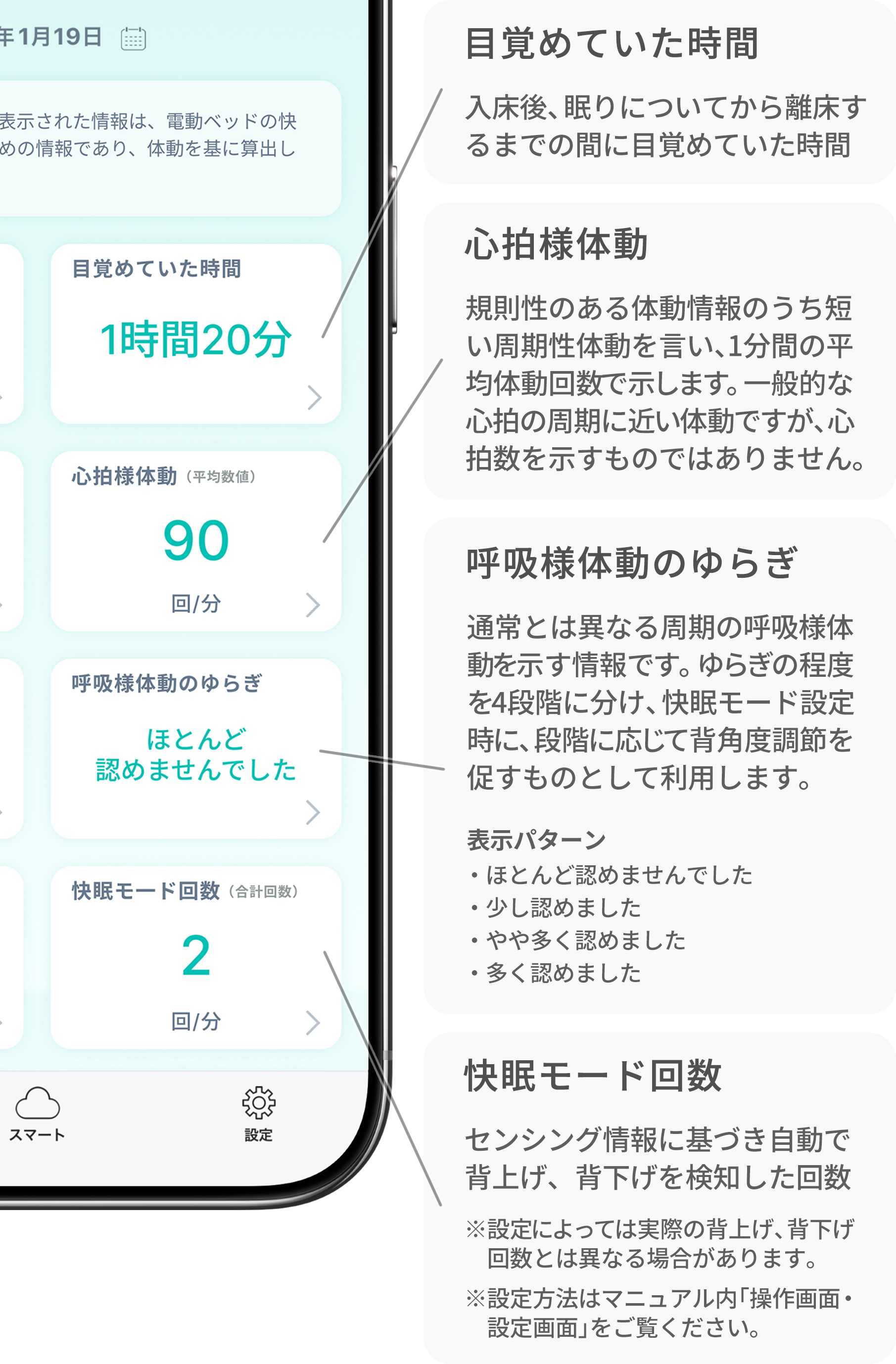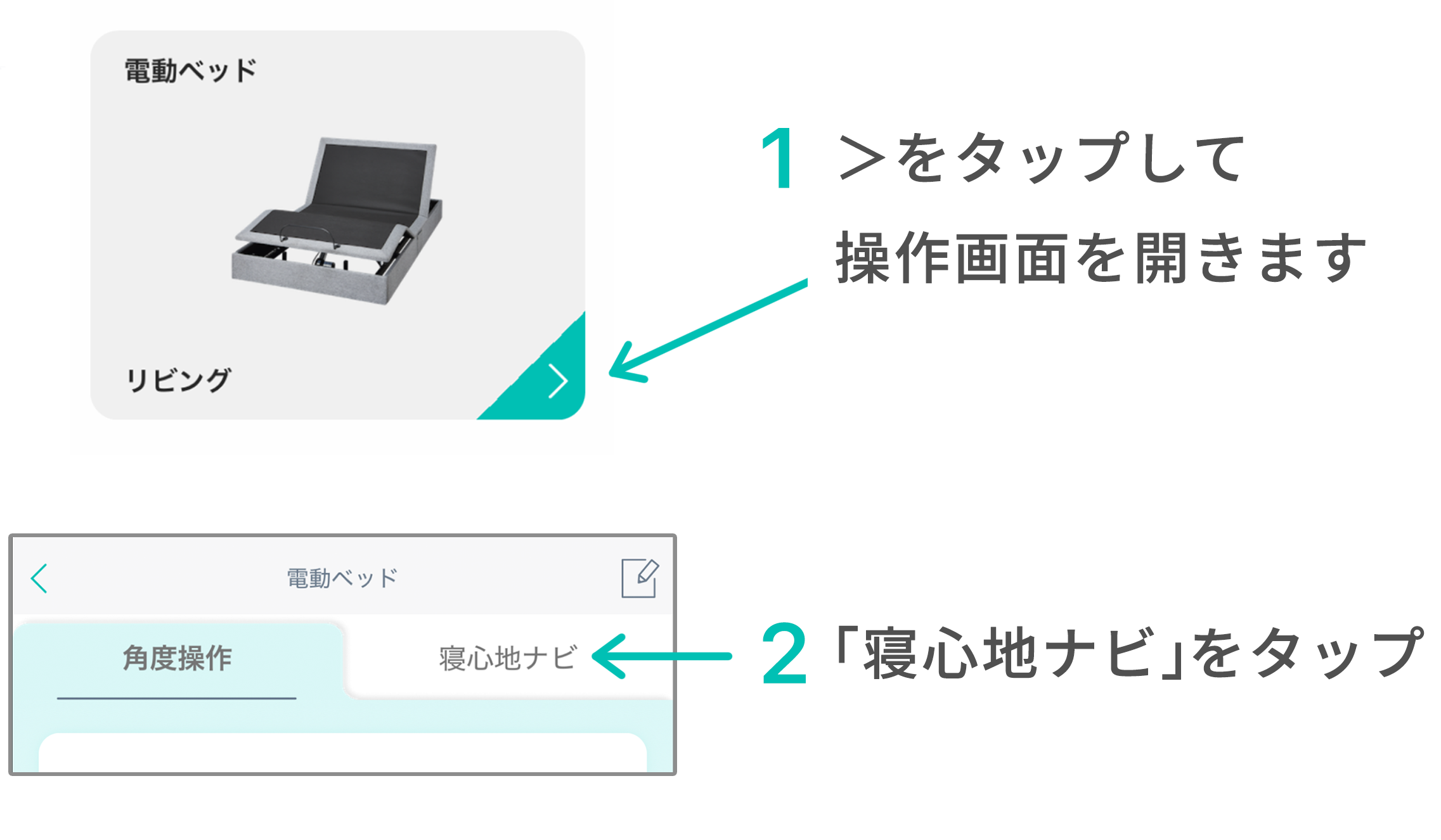 ここでは例として、「電動ベッドが入眠を検知したときにエアコンをオンにする」設定の手順を説明します。