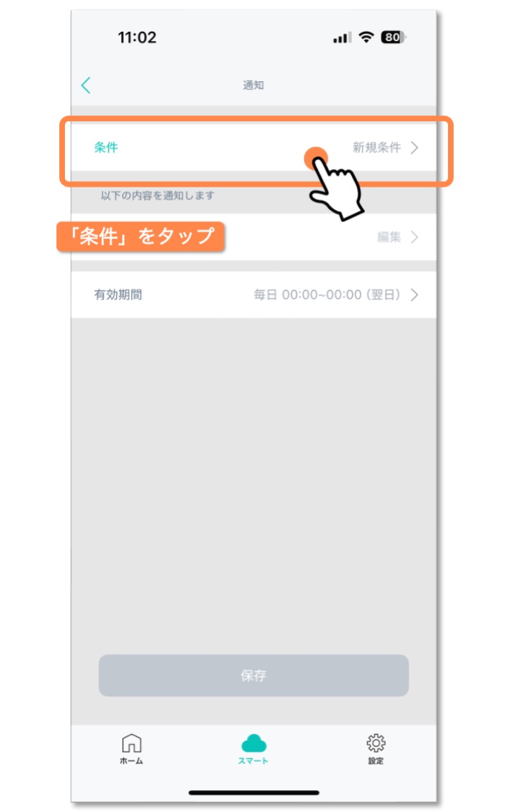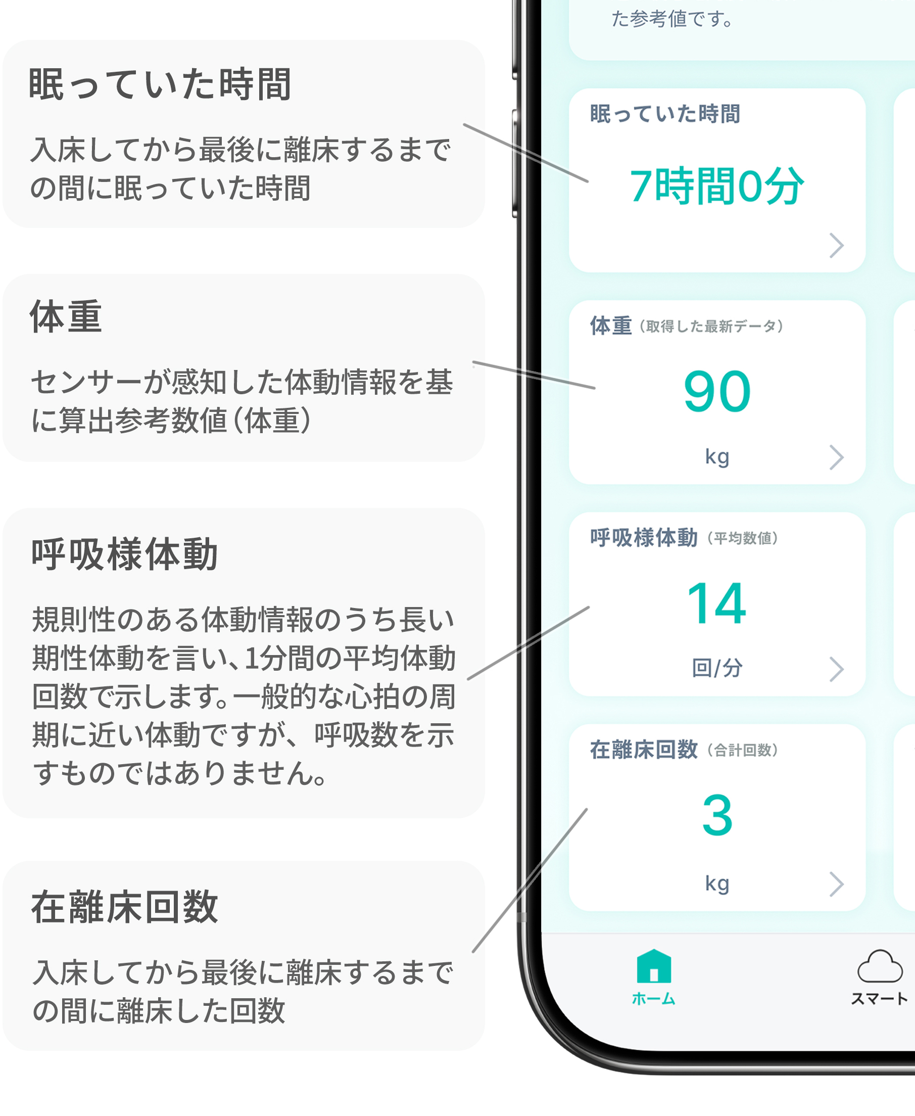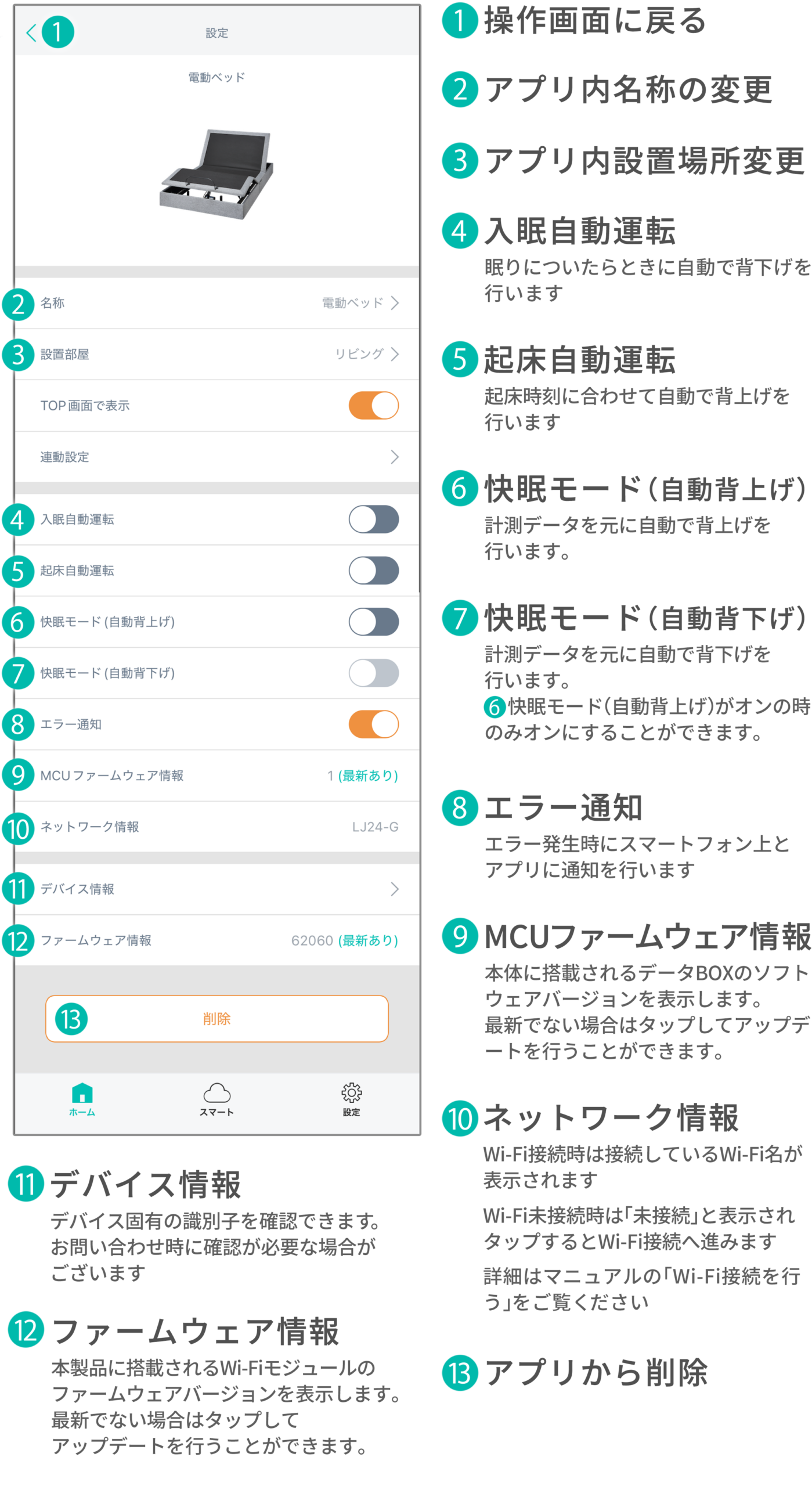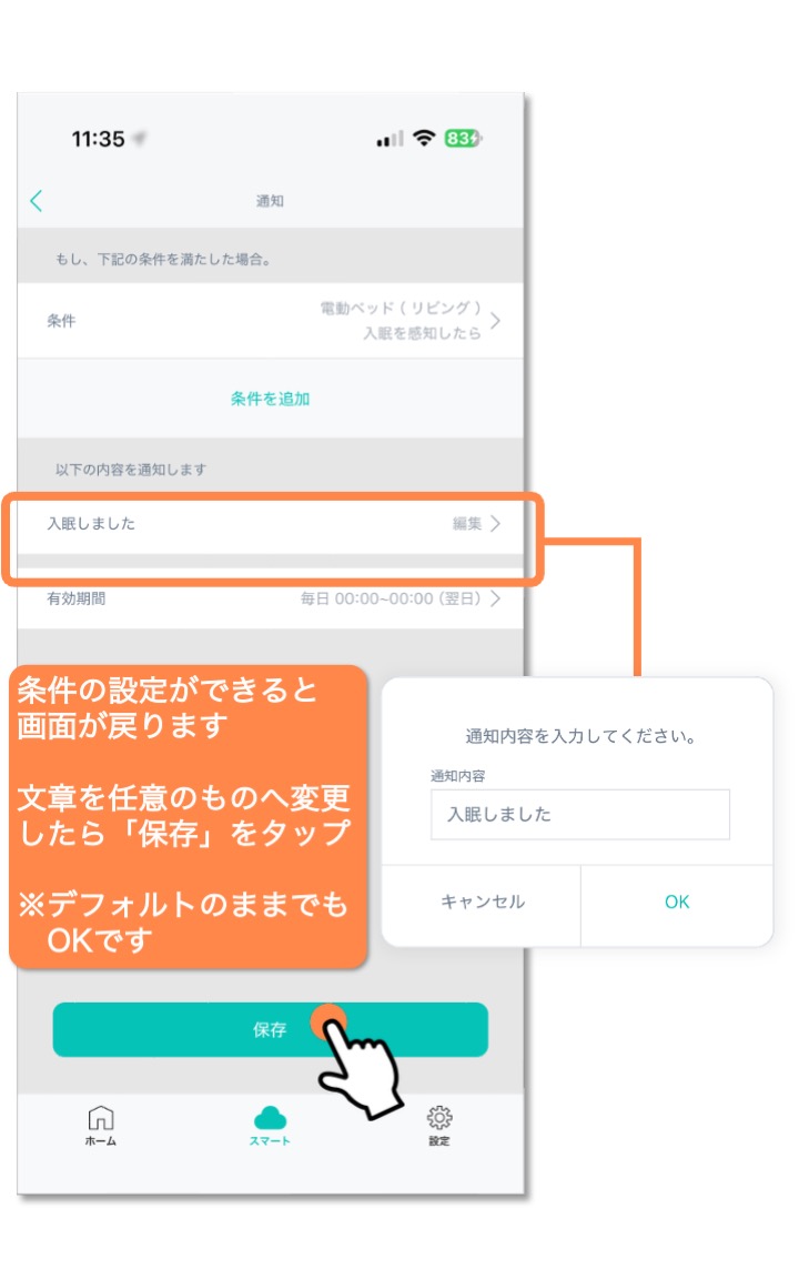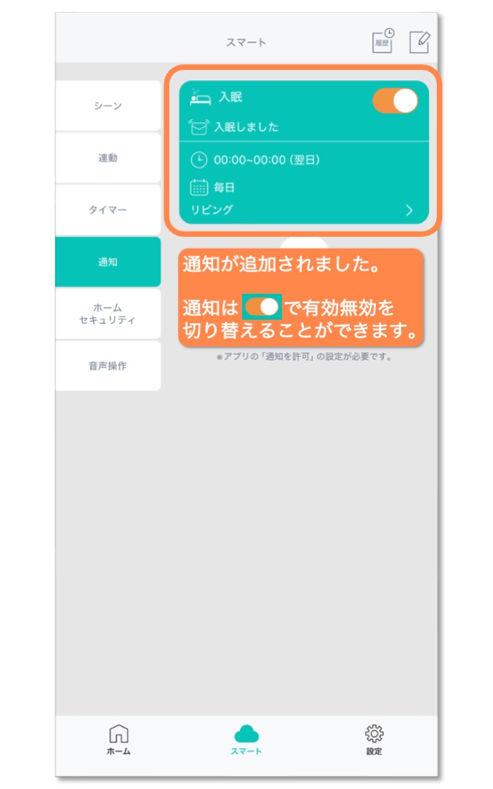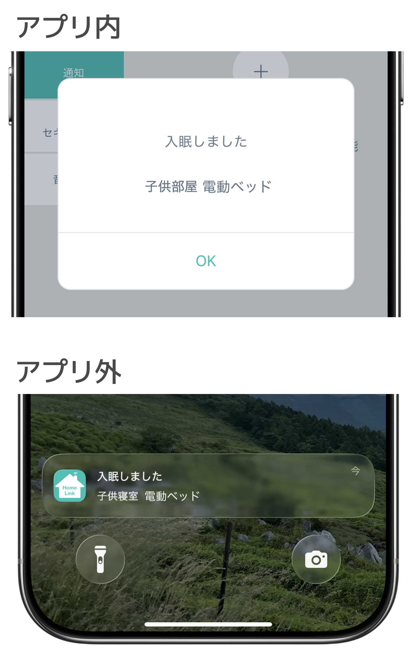 ここでは例として、「電動ベッドが入眠を検知したときに通知を行う」設定の手順を説明します。