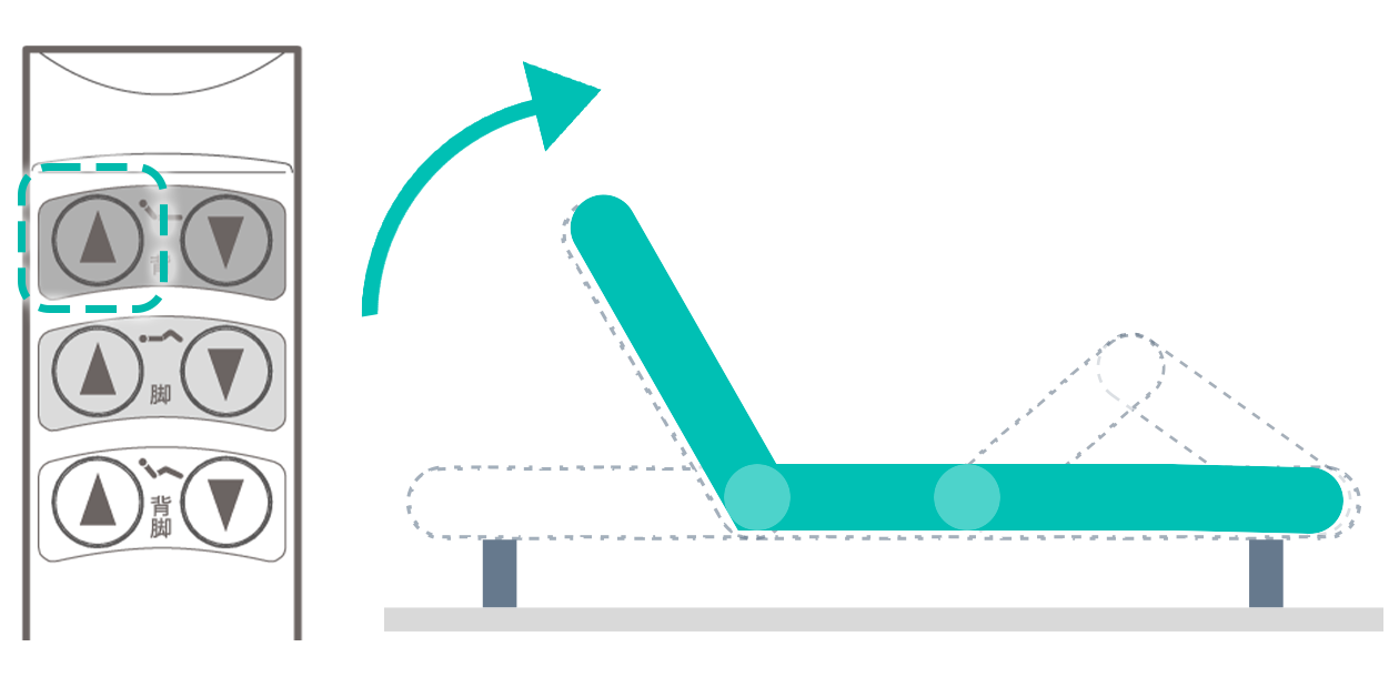 あらかじめ、ベッドの背を最も高い位置までリモコンを使用し移動させておいてください。