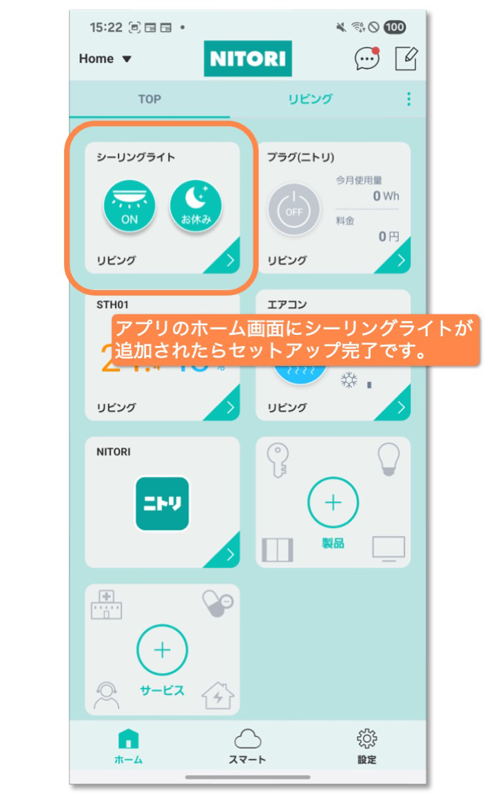 シーリングライトを天井に取り付け、操作できる状態にしておいてください。
