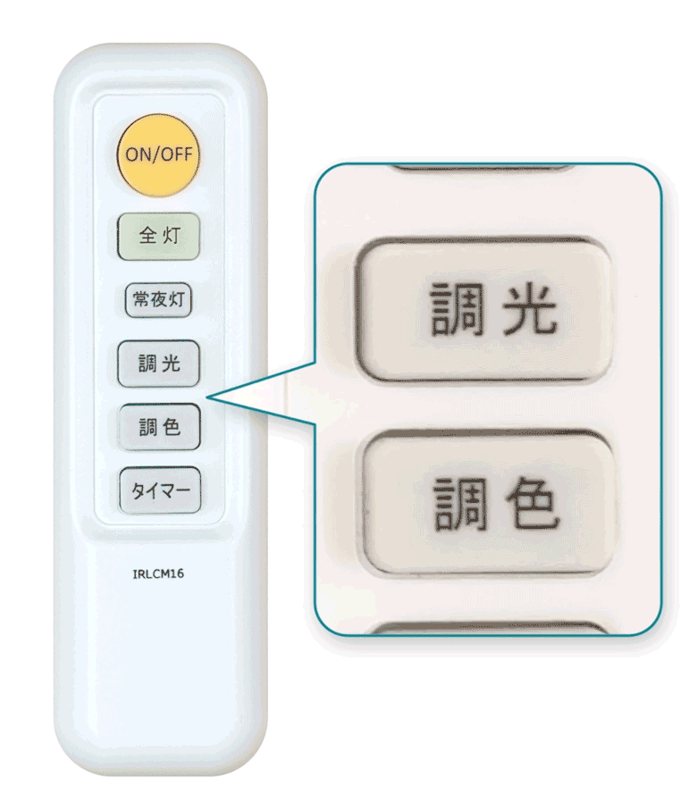 セットアップ前にリモコンの「調光」「調色」ボタンを6回 交互に押して、セットアップ待機状態にします。