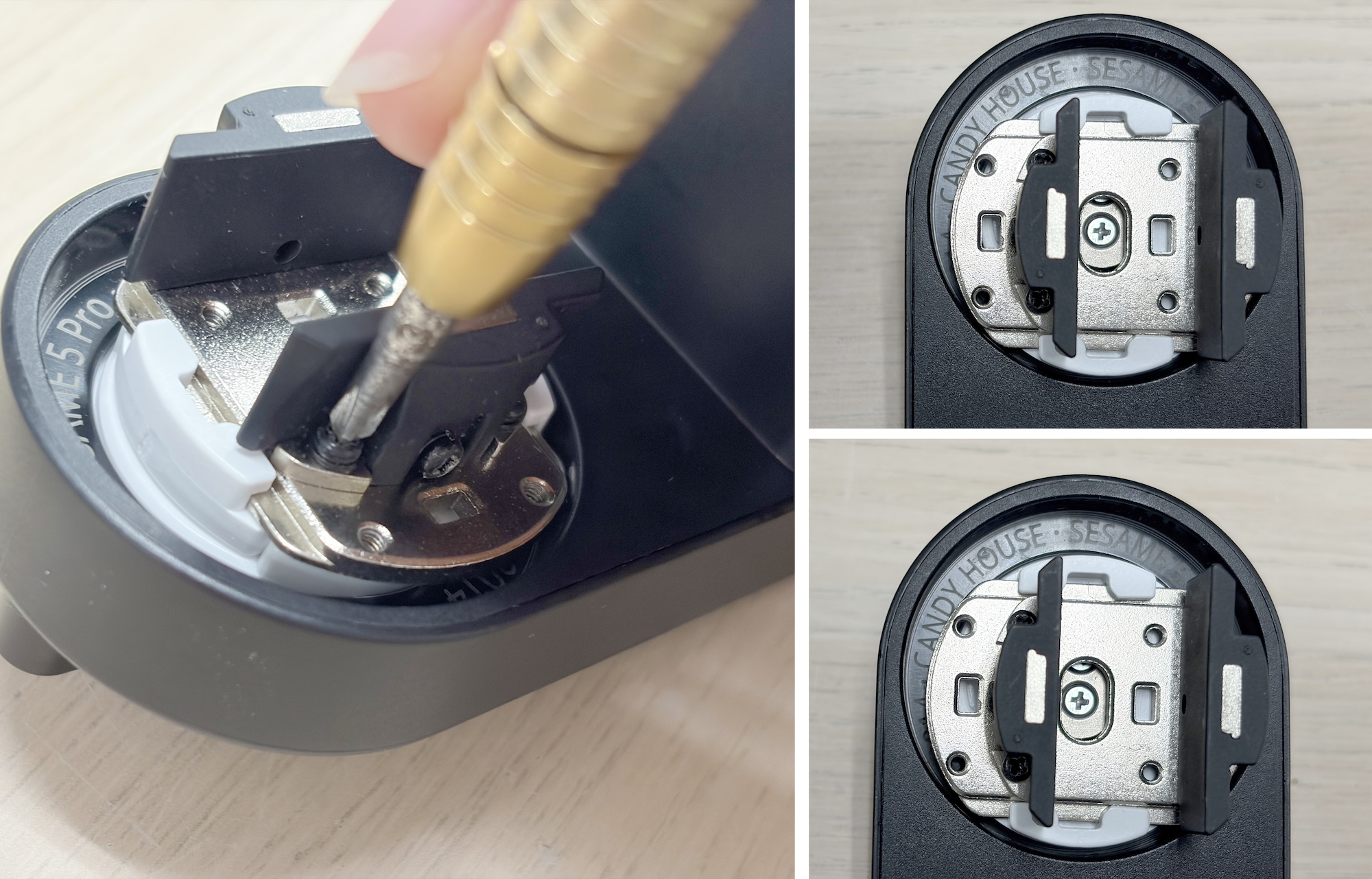 磁石のついたブラケットをセサミ5Proにネジで取り付けます。