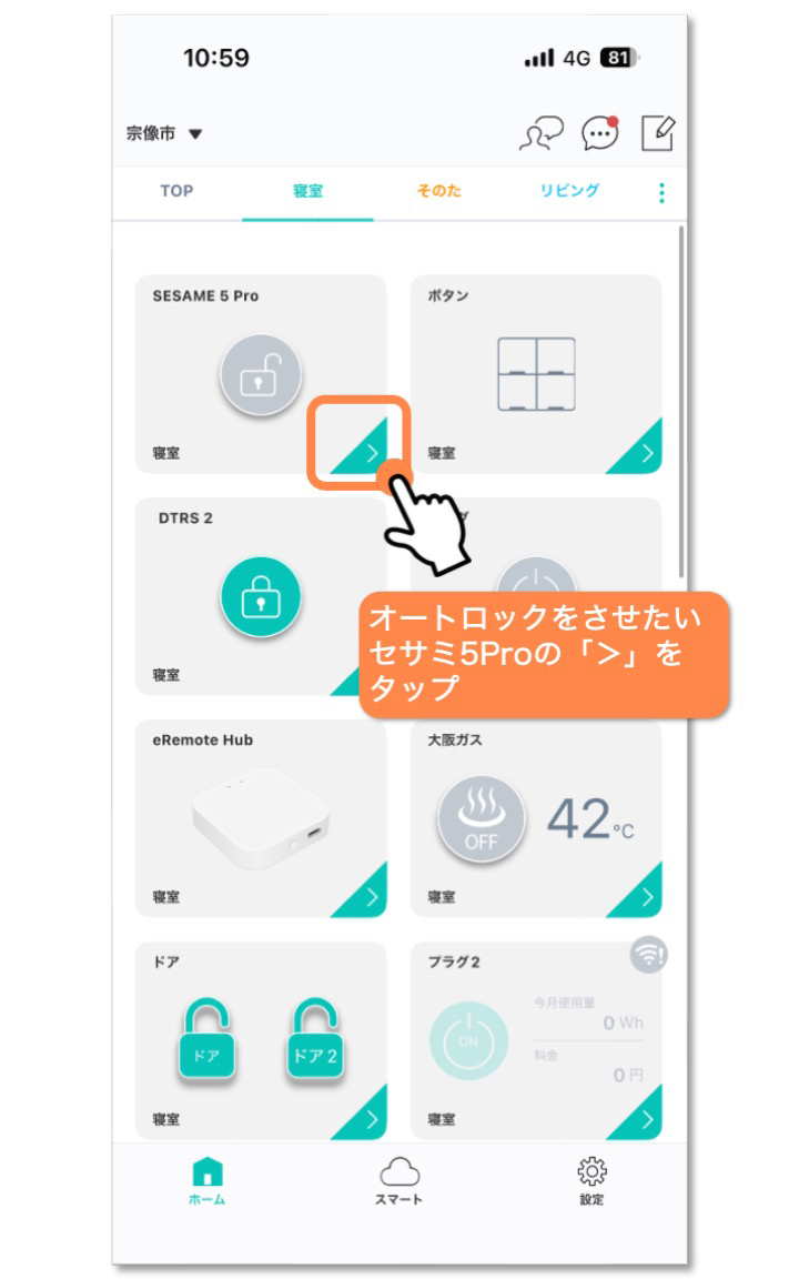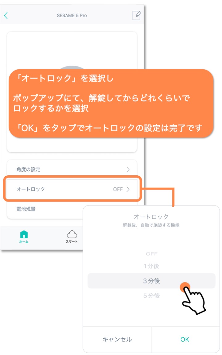HomeLinkでは、セサミ5Proのオートロック機能が使用できます。