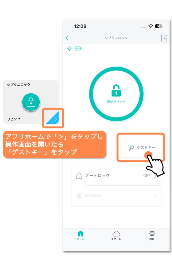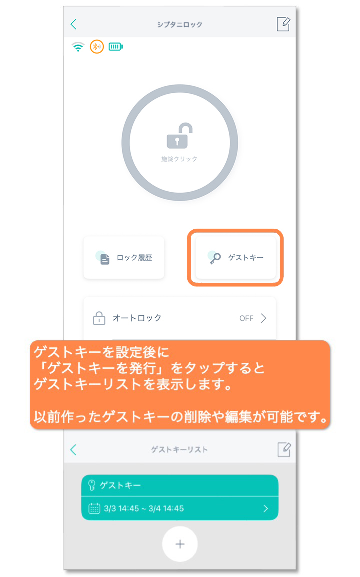 ゲストキーとは、第三者に鍵の解施錠の権限を一時的に付与することができる機能です。